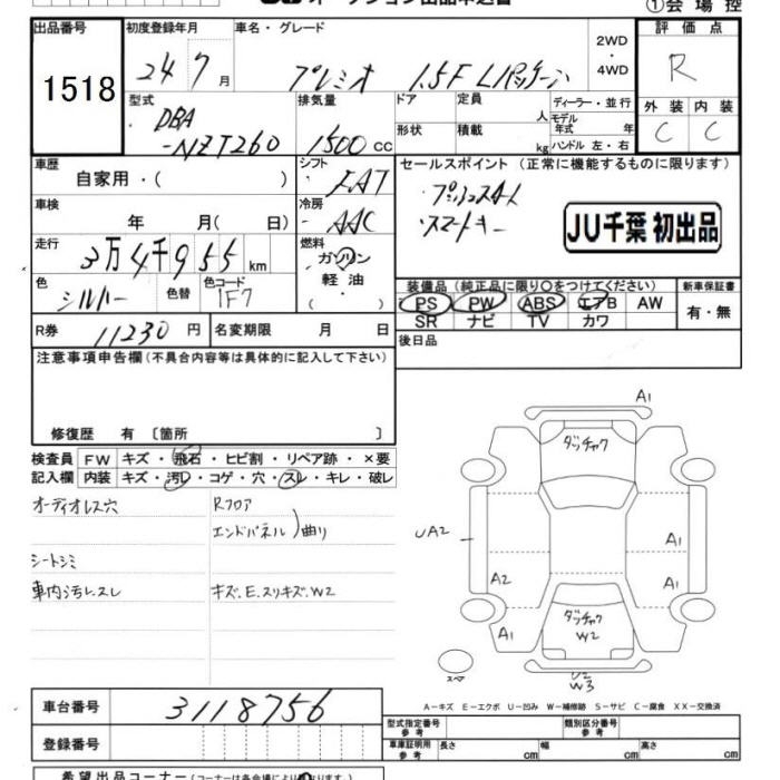TOYOTA PREMIO - лот 1518