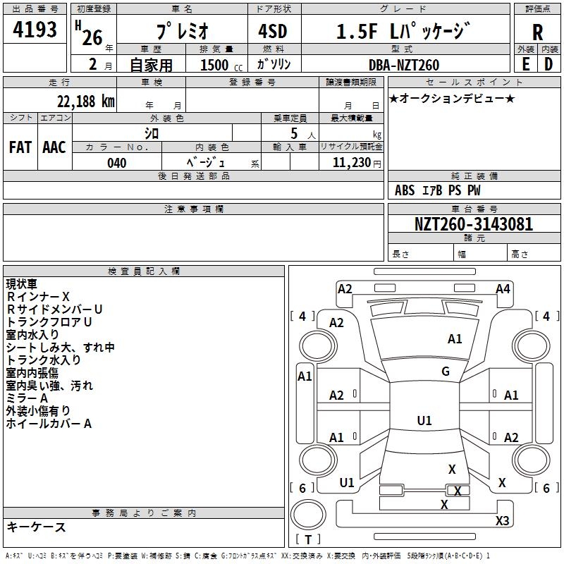 TOYOTA PREMIO - лот 4193