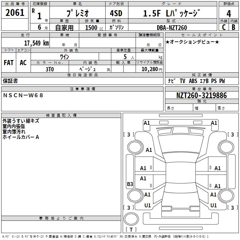 TOYOTA PREMIO - лот 2061