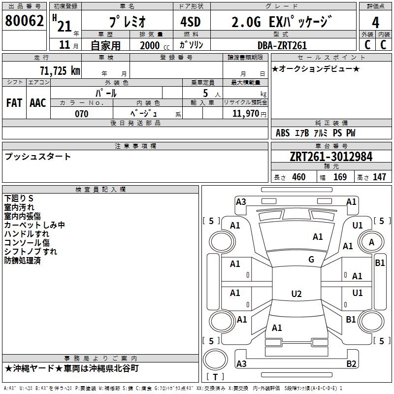 TOYOTA PREMIO - лот 80062
