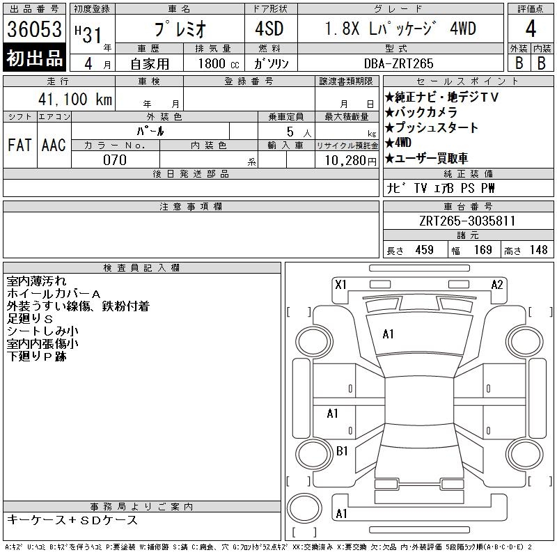 TOYOTA PREMIO - лот 36053