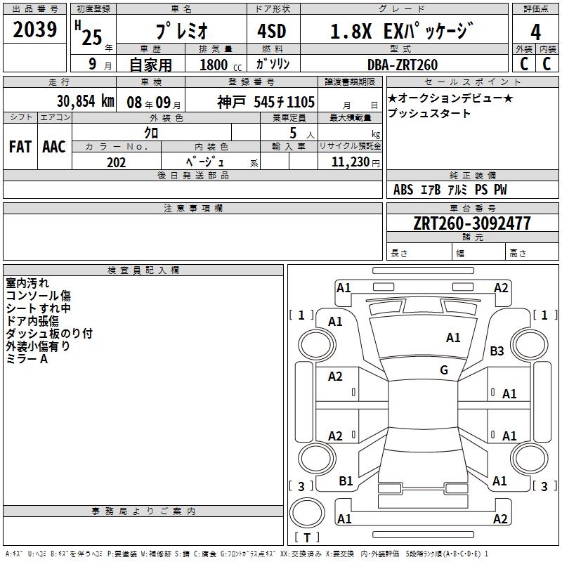 TOYOTA PREMIO - лот 2039