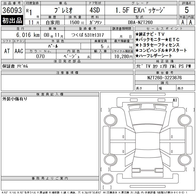 TOYOTA PREMIO - лот 36093