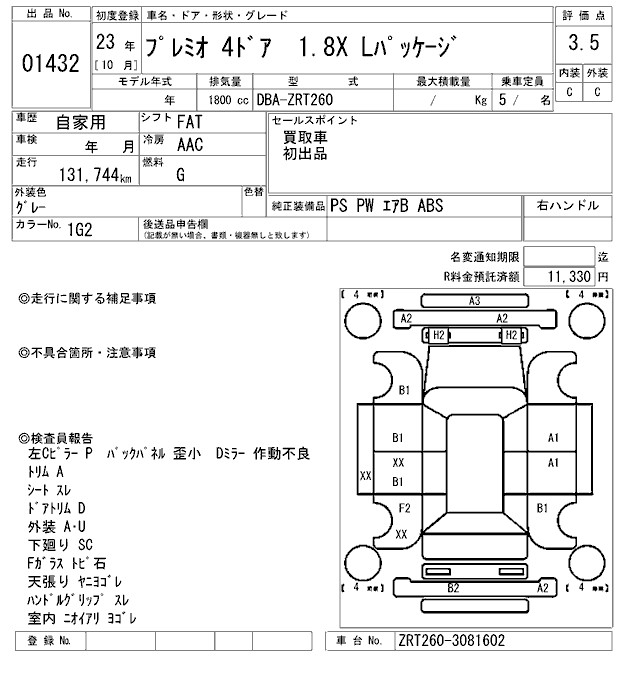 TOYOTA PREMIO - лот 1432