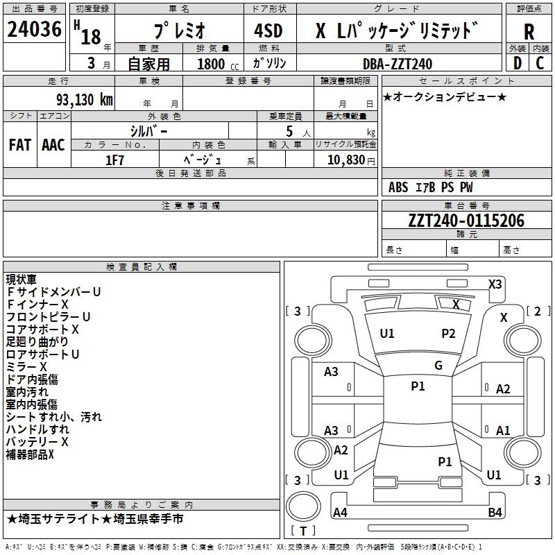 TOYOTA PREMIO - лот 24036