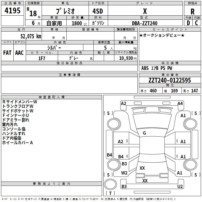 TOYOTA PREMIO - лот 4195