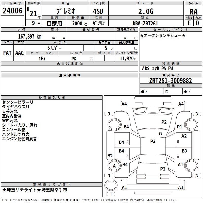 TOYOTA PREMIO - лот 24006