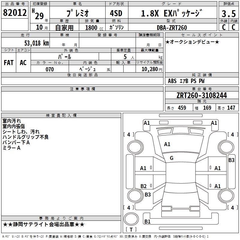 TOYOTA PREMIO - лот 82012