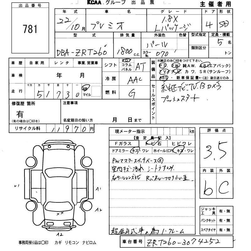 TOYOTA PREMIO - лот 781