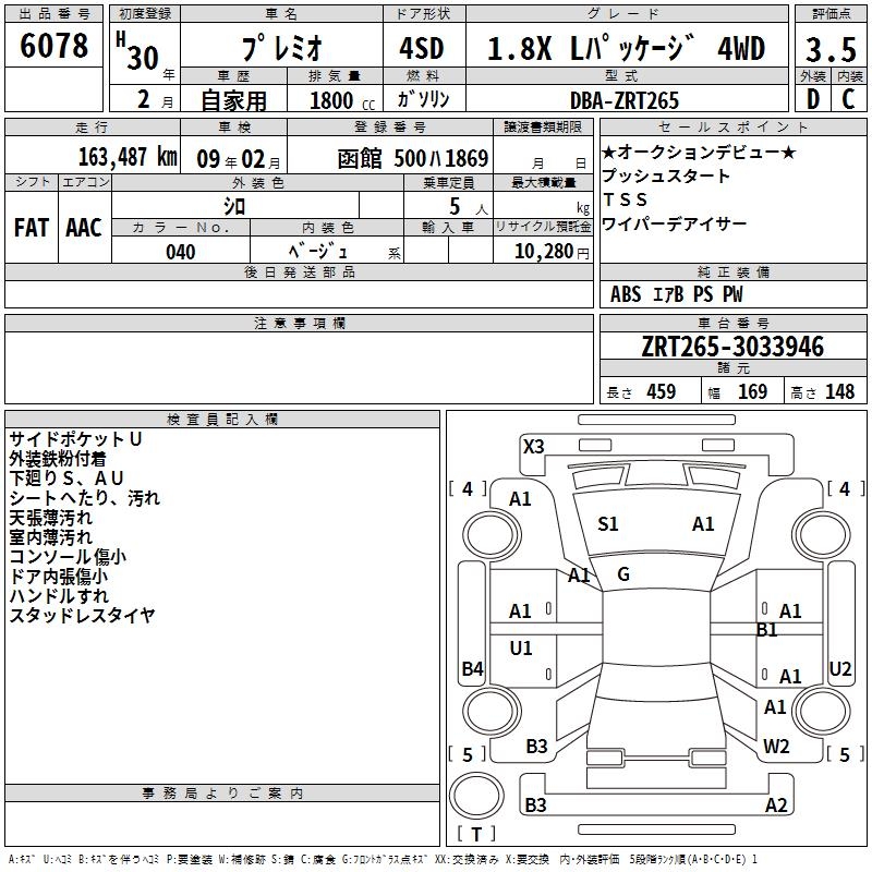 TOYOTA PREMIO - лот 6078