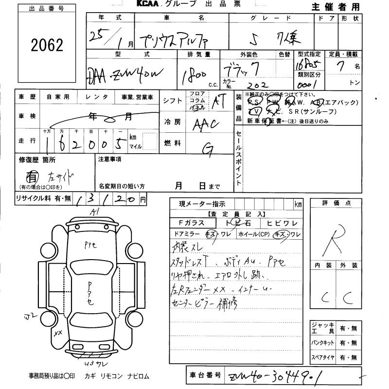 TOYOTA PRIUS ALPHA - лот 2062