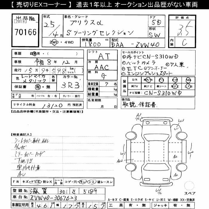 TOYOTA PRIUS ALPHA S TOURING SELECTION - лот 70166