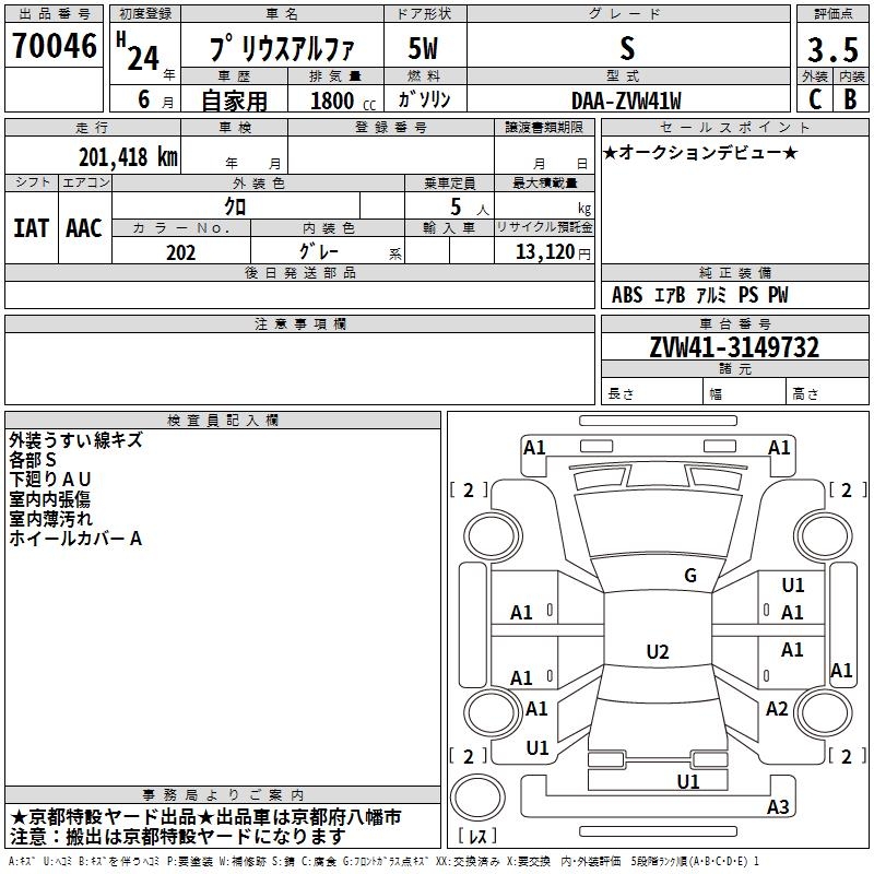 TOYOTA PRIUS ALPHA - лот 70046