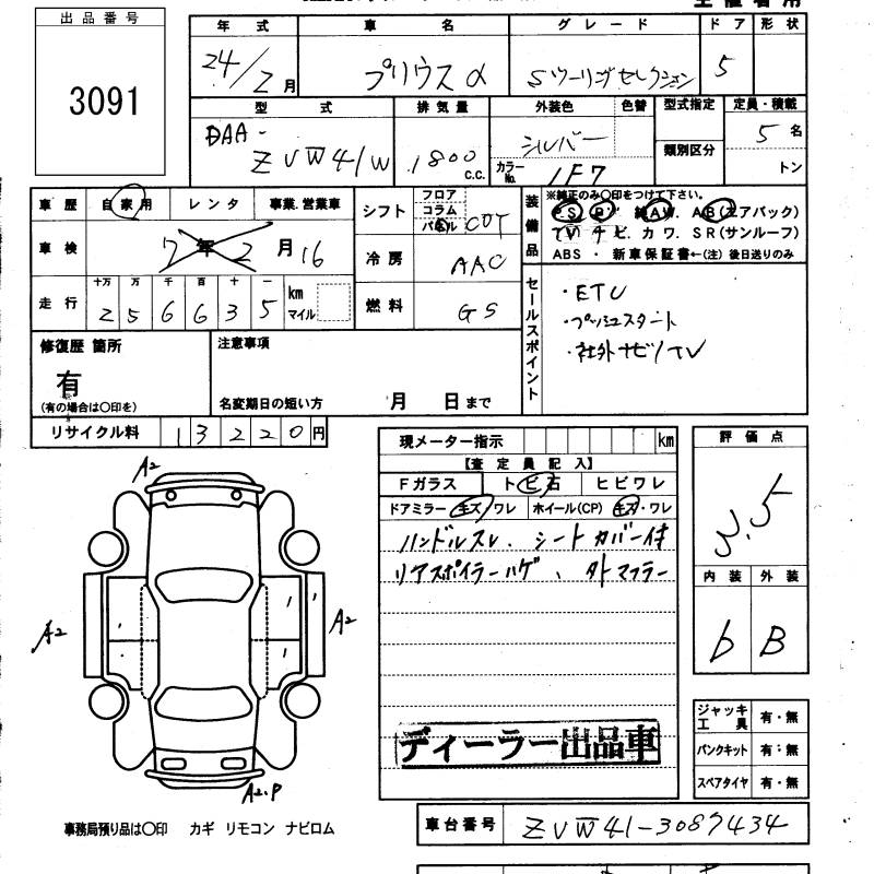 TOYOTA PRIUS ALPHA - лот 3091