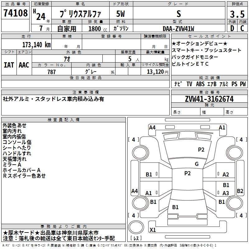 TOYOTA PRIUS ALPHA - лот 74108