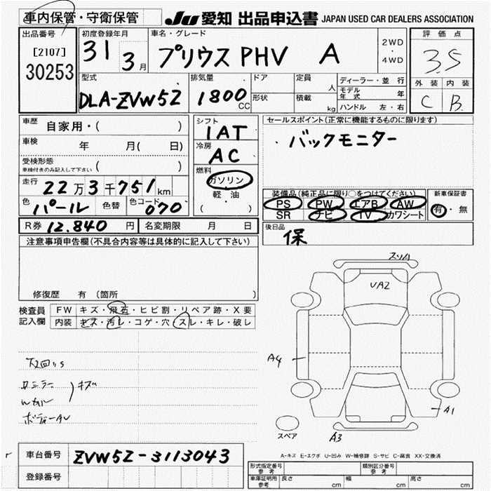 TOYOTA PRIUS PHV A - лот 30253