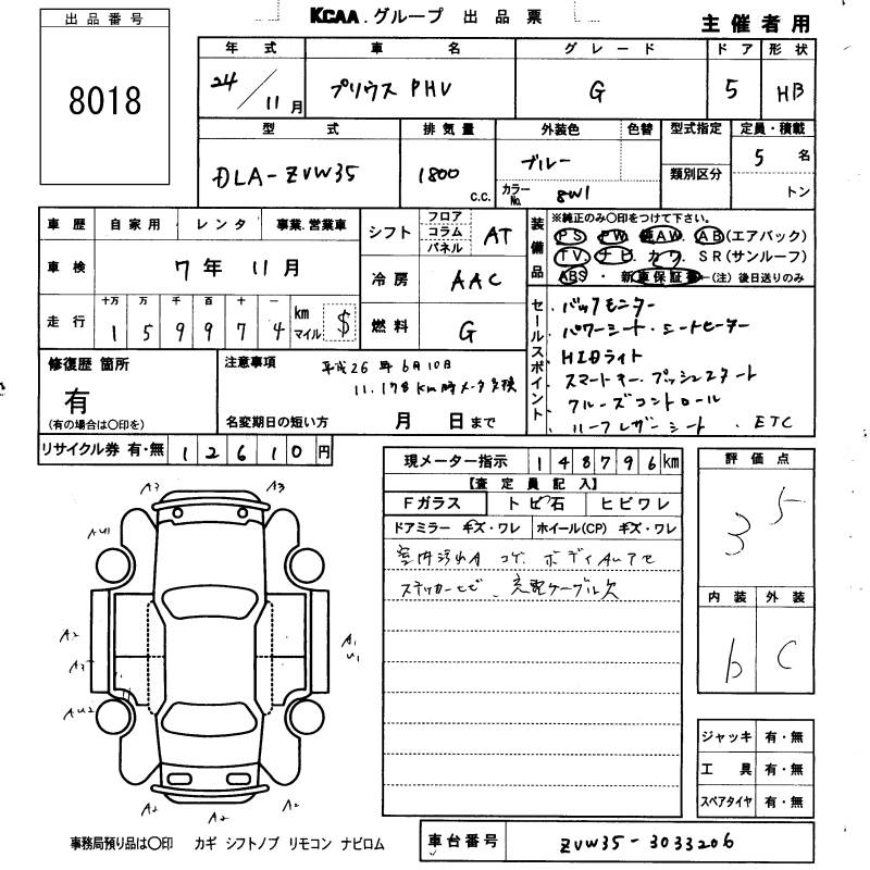 TOYOTA PRIUS PHV G - лот 8018