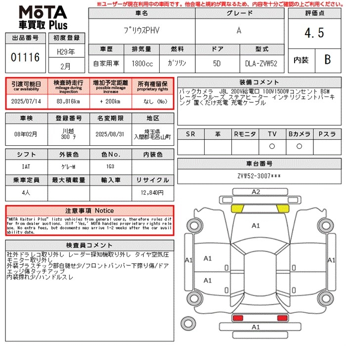 TOYOTA PRIUS PHV A - лот 1116