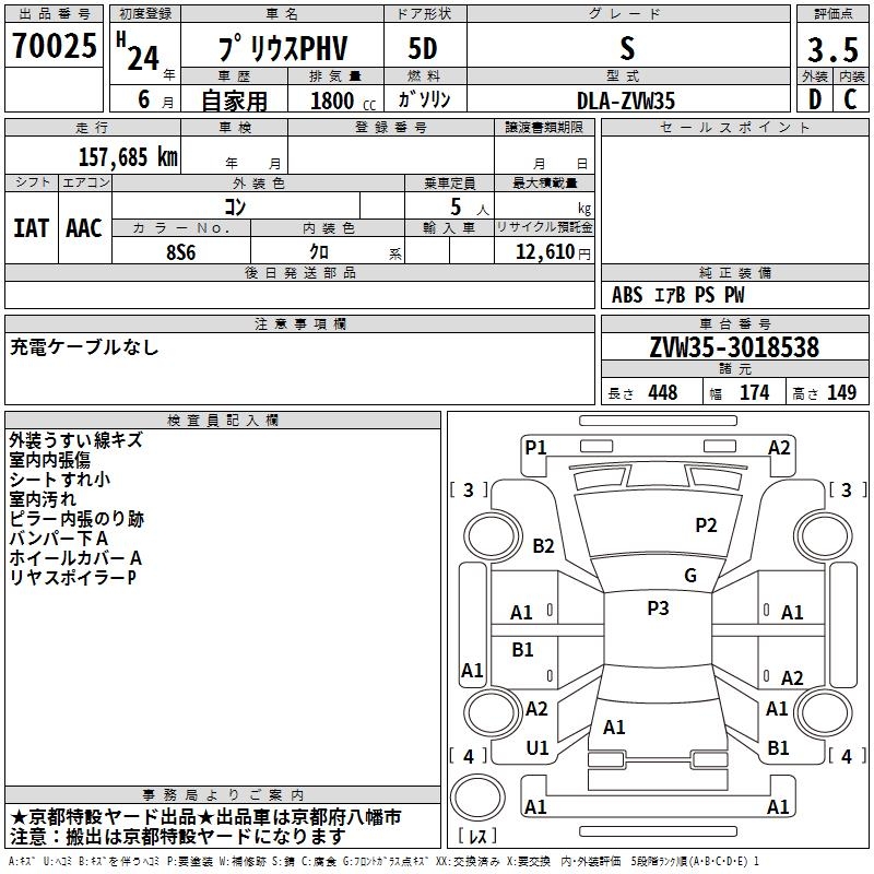 TOYOTA PRIUS PHV S - лот 70025