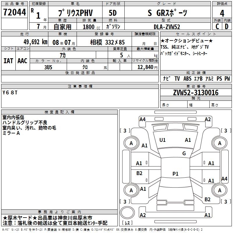 TOYOTA PRIUS PHV S GR SPORT - лот 72044