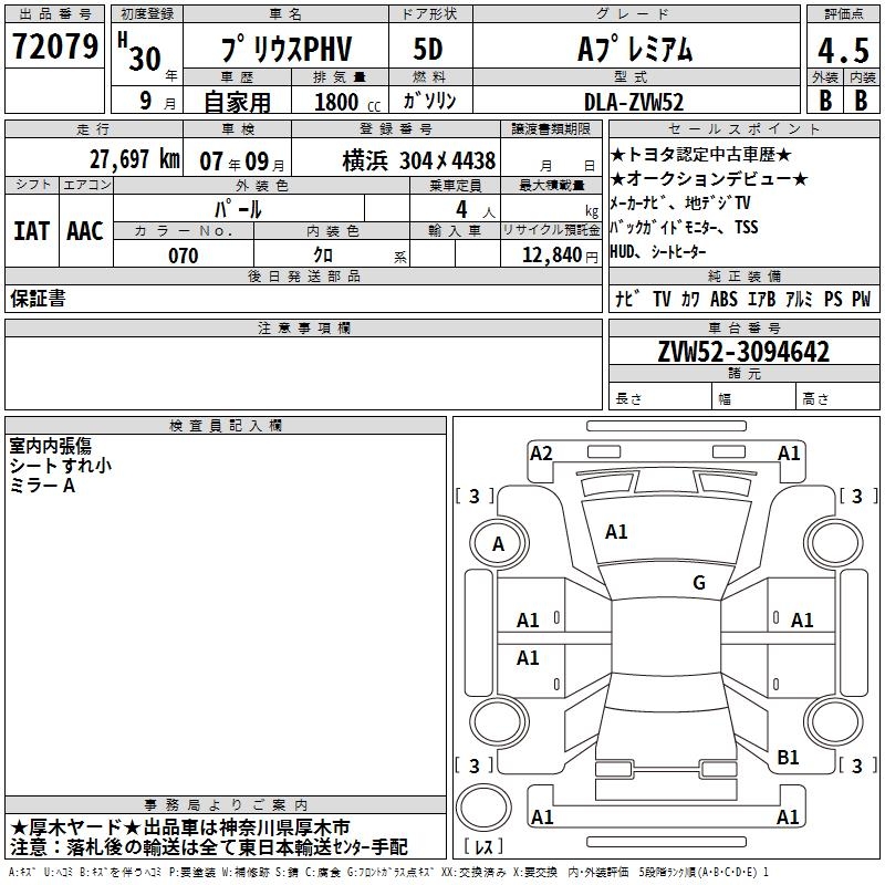 TOYOTA PRIUS PHV A PREMIUM - лот 72079