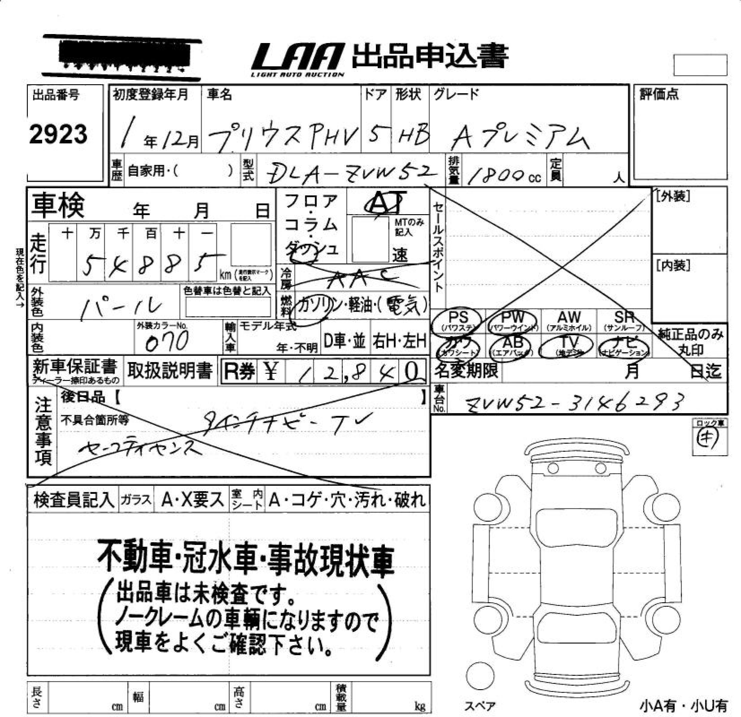 TOYOTA PRIUS PHV A PREMIUM - лот 2923