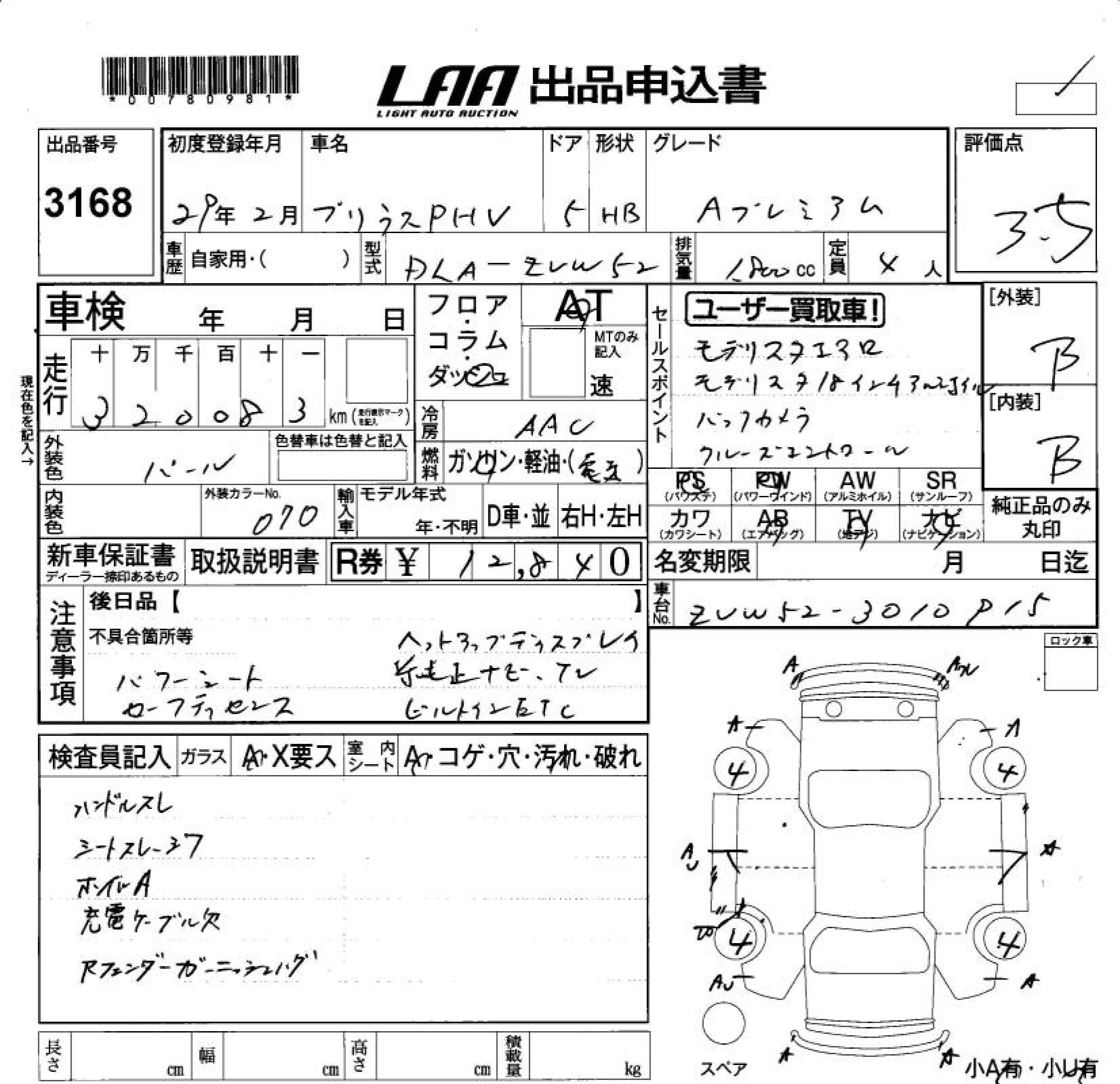 TOYOTA PRIUS PHV A PREMIUM - лот 3168