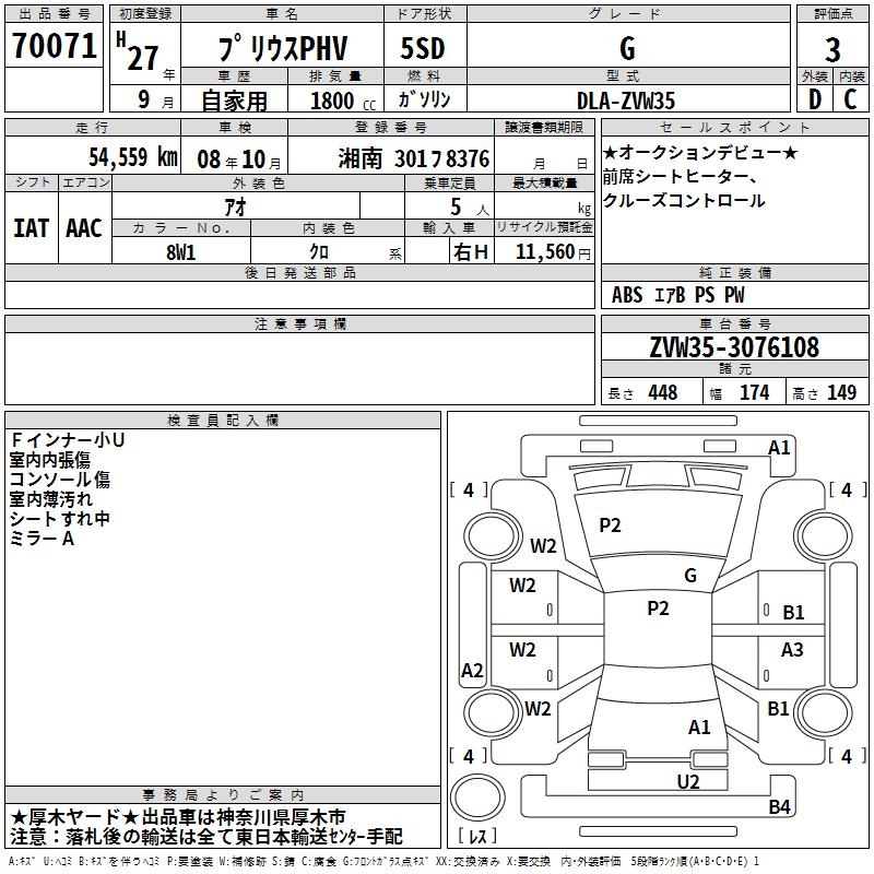 TOYOTA PRIUS PHV G - лот 70071