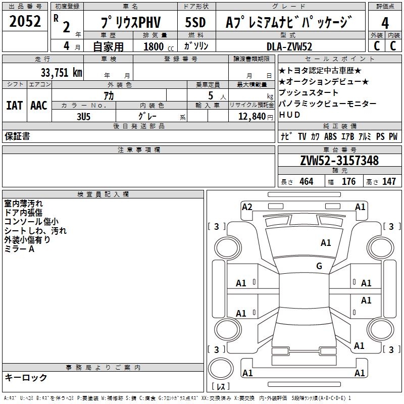 TOYOTA PRIUS PHV A PREMIUM NAVIGATION PACKAGE - лот 2052