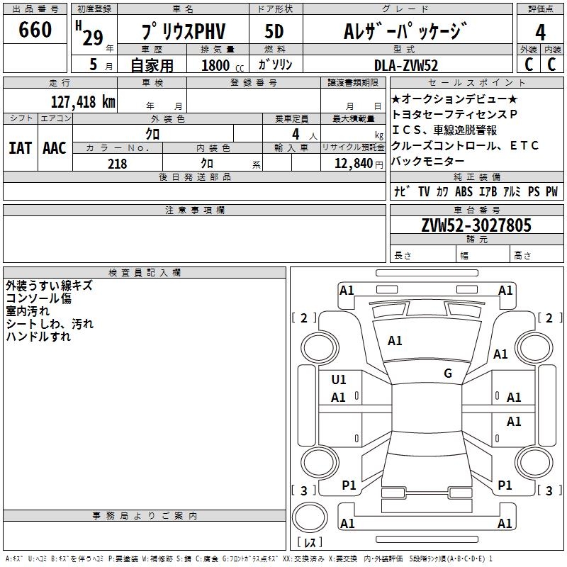 TOYOTA PRIUS PHV A LEATHER PACKAGE - лот 660