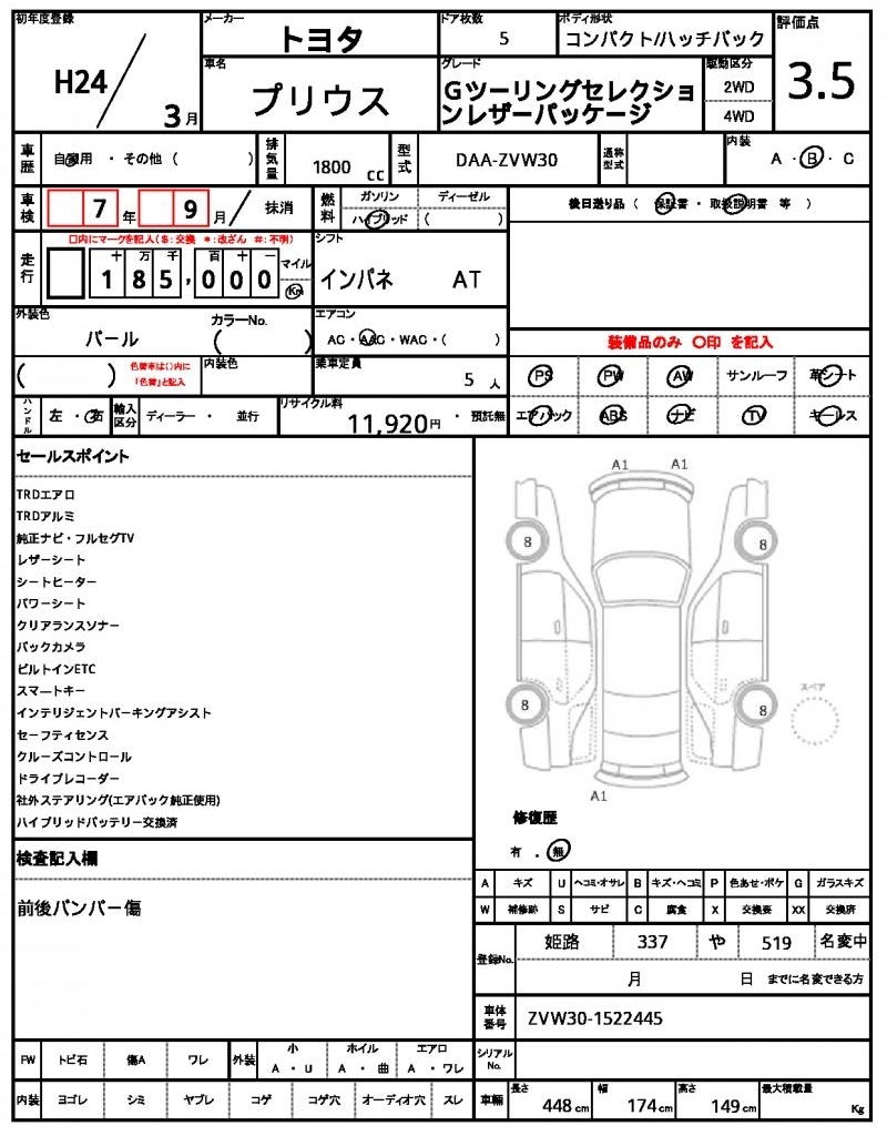 TOYOTA PRIUS - лот 5957