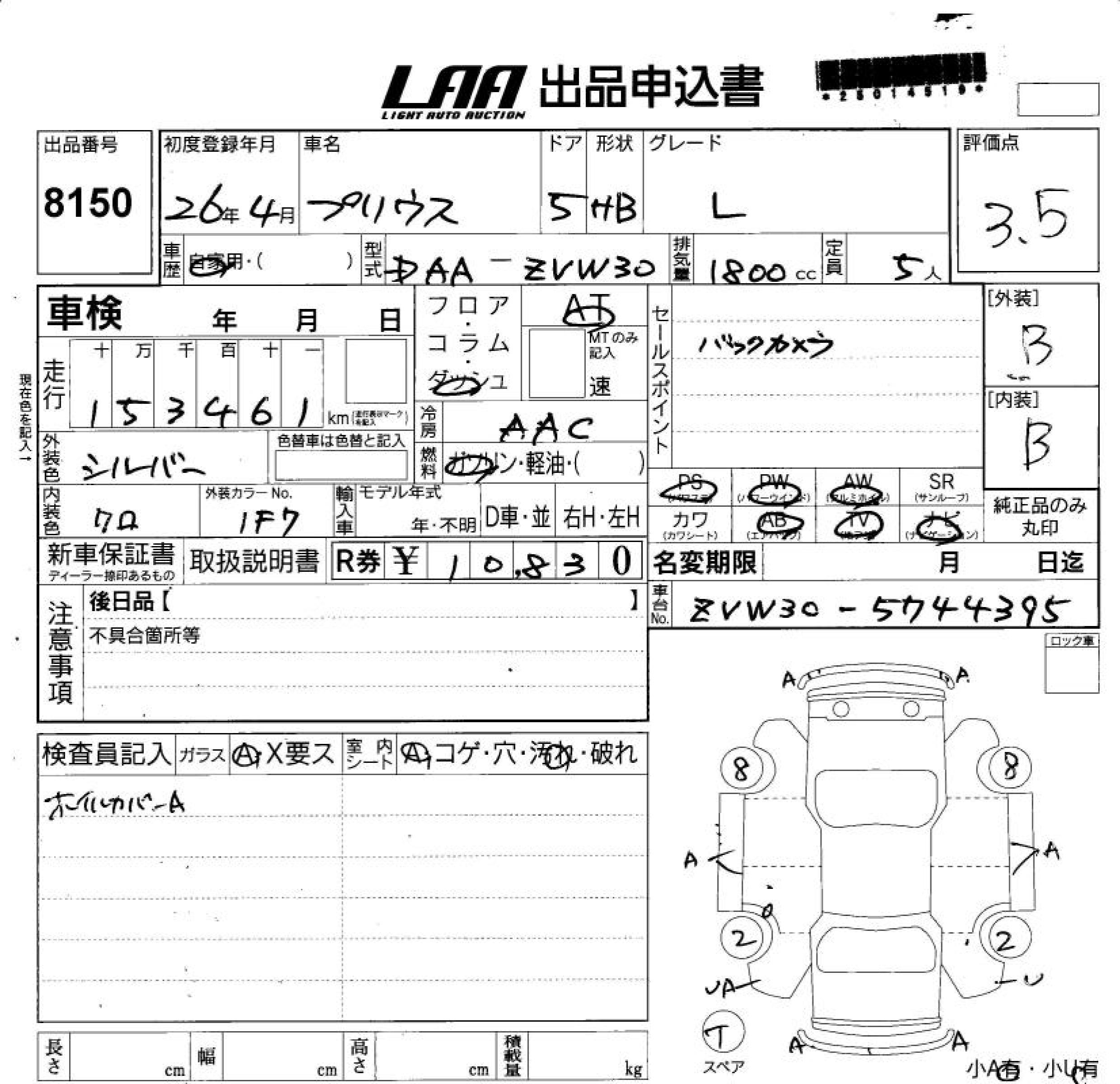 TOYOTA PRIUS L - лот 8150