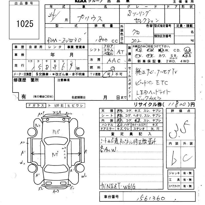 TOYOTA PRIUS S TOURING SELECTION - лот 1025