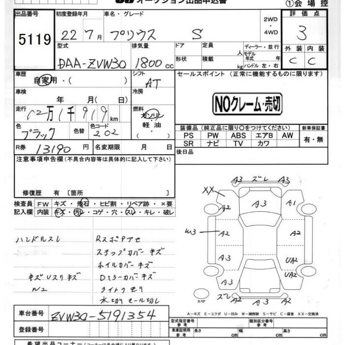TOYOTA PRIUS S - лот 5119