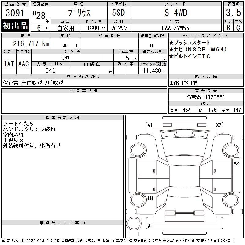 TOYOTA PRIUS S 4WD - лот 3091