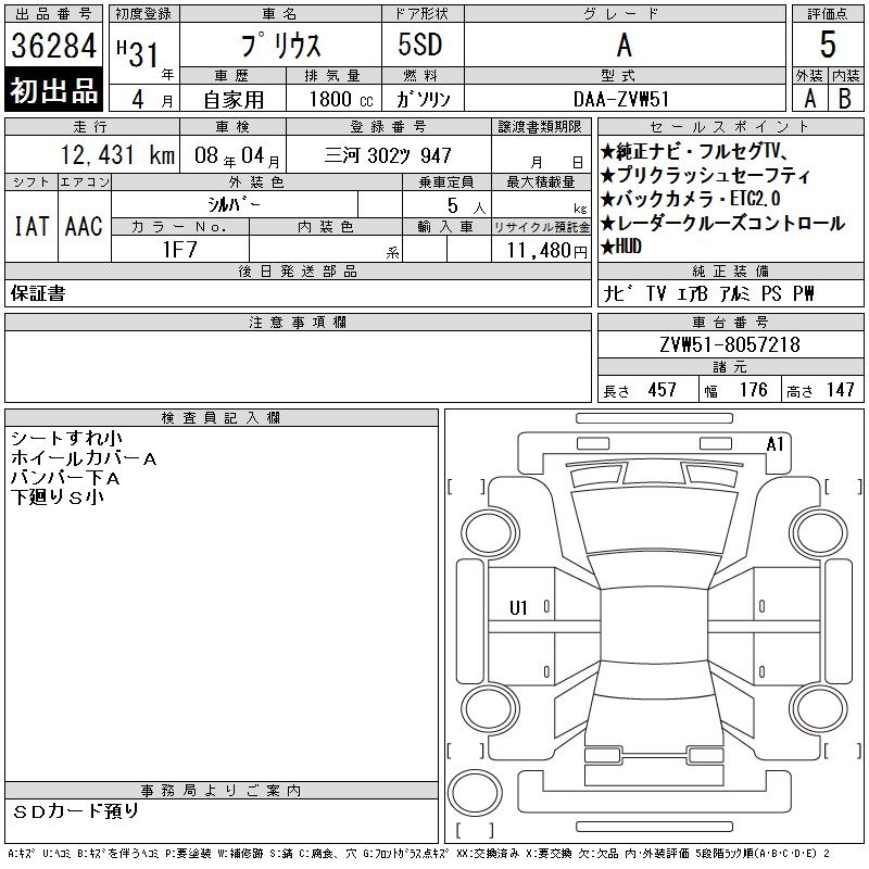 TOYOTA PRIUS A - лот 36284