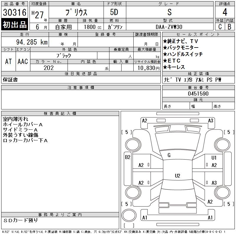 TOYOTA PRIUS S - лот 30316