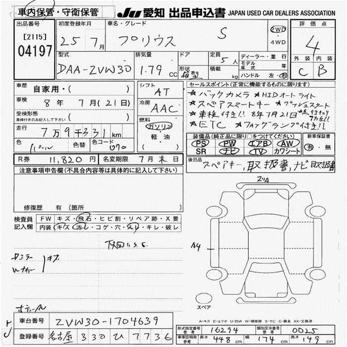 TOYOTA PRIUS S - лот 4197