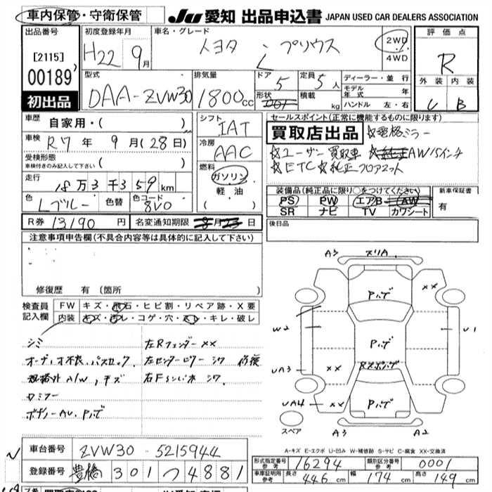 TOYOTA PRIUS L - лот 189