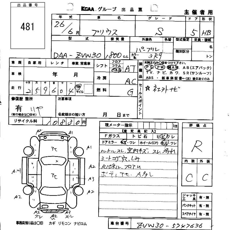 TOYOTA PRIUS S - лот 481