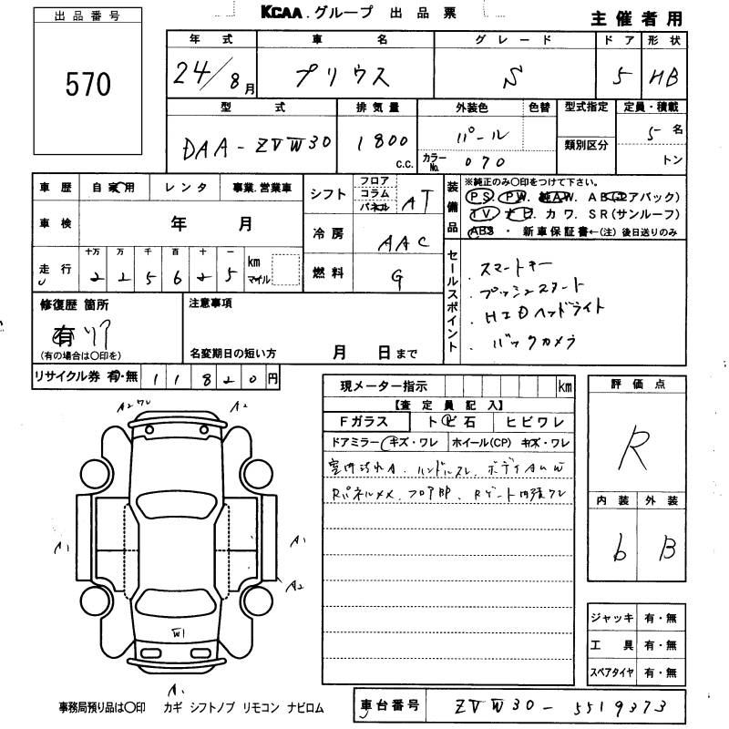TOYOTA PRIUS S - лот 570