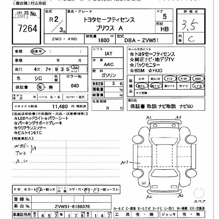 TOYOTA PRIUS A TOYOTA SAFETY SENS - лот 7264