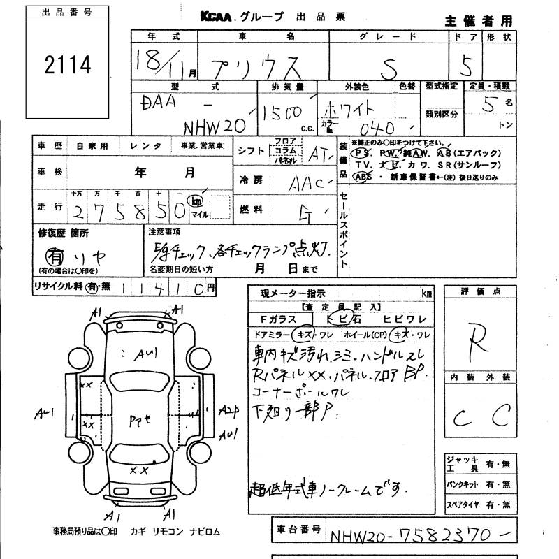TOYOTA PRIUS S - лот 2114