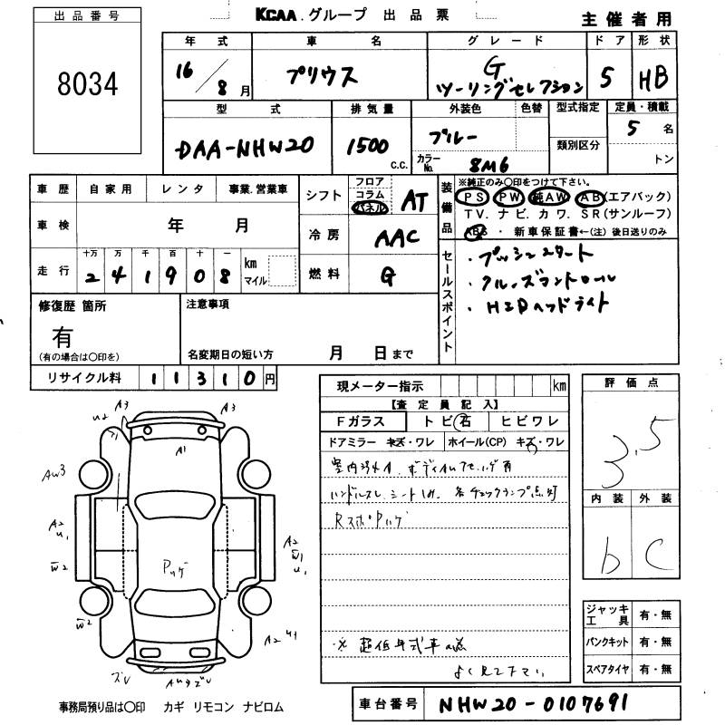 TOYOTA PRIUS G TOURING SELECTION - лот 8034