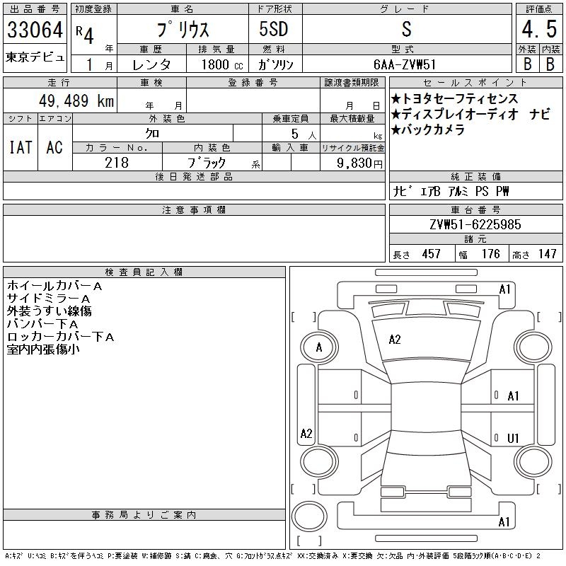 TOYOTA PRIUS S - лот 33064
