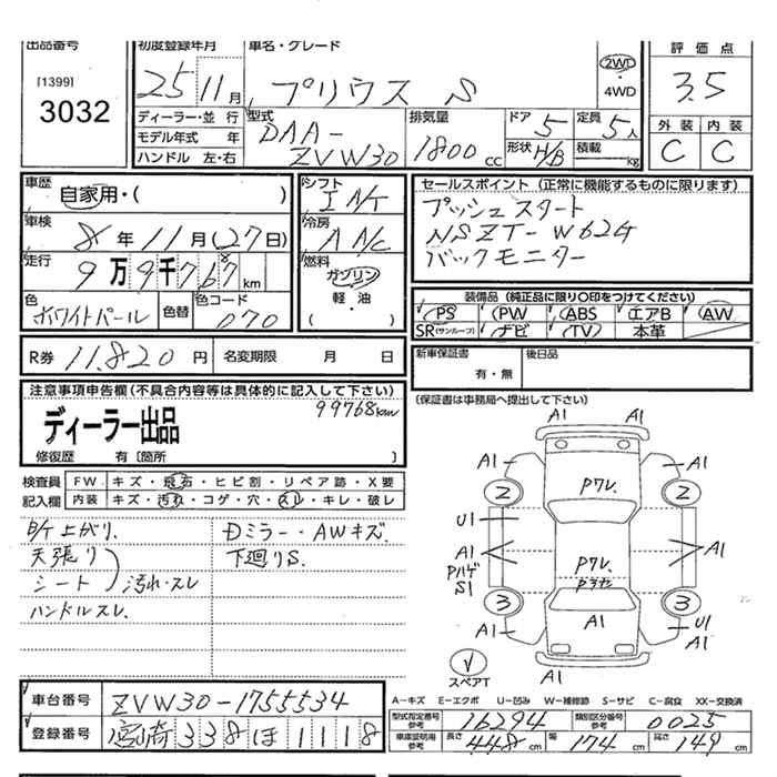 TOYOTA PRIUS S 2WD - лот 3032