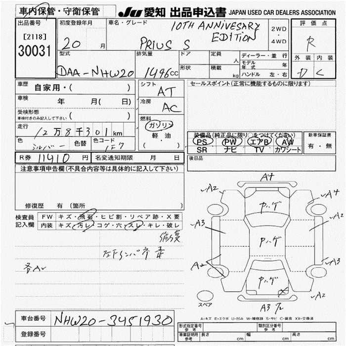 TOYOTA PRIUS S 10TH ANNIVERSARY ED - лот 30031