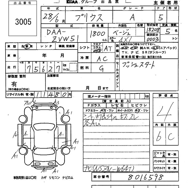 TOYOTA PRIUS A - лот 3005