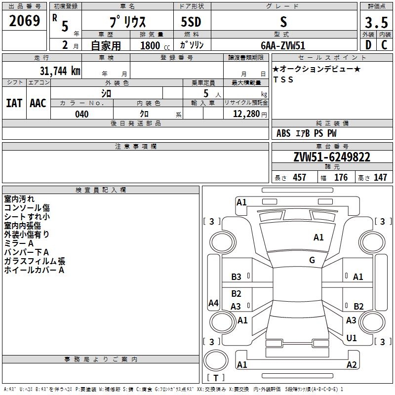 TOYOTA PRIUS S - лот 2069