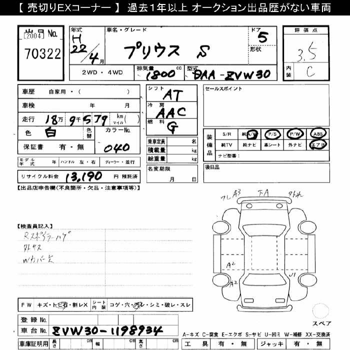 TOYOTA PRIUS S - лот 70322